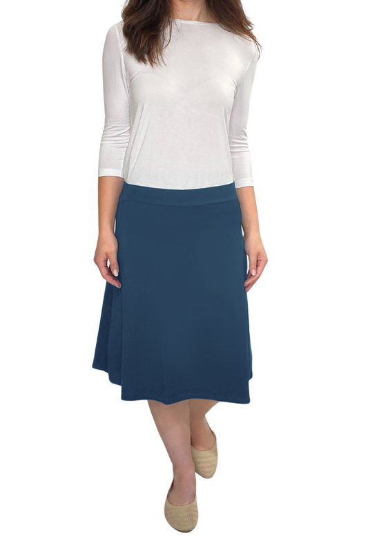 Cynthia Classic A-Line Knee Length Cotton Stretch Skirt - Modest Everyday Comfort